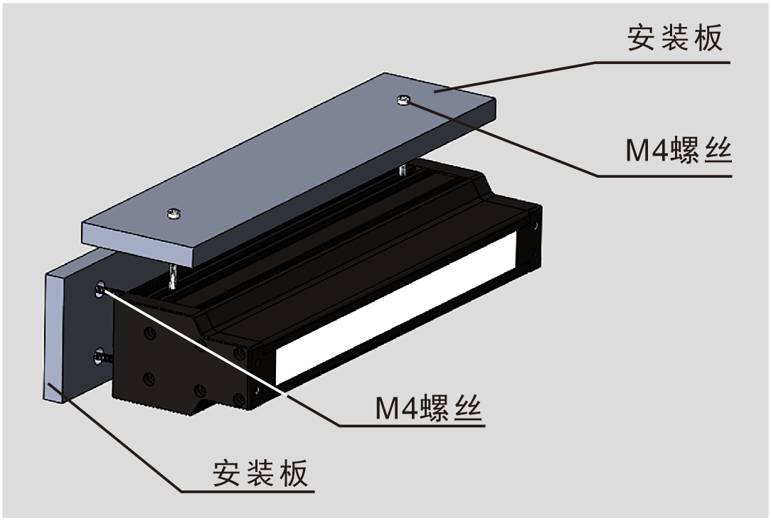 安裝說明:所有螺母卡槽均用M4螺母與M4螺絲固定,先用M4螺母放進去光源螺母卡槽,然后用M4螺絲穿過固定板,與M4螺母進行固定。