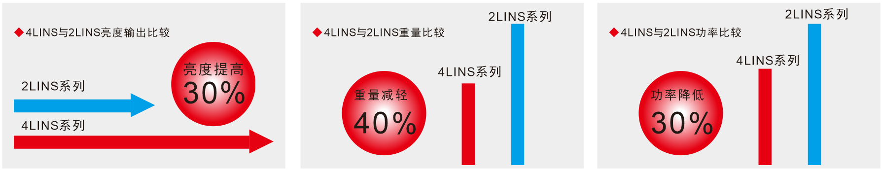 4LINS系列亮度高達(dá)130萬Lx(標(biāo)準(zhǔn)模式),較2LINS系列提升30%,重量更輕,體積更小巧,性價比更高。