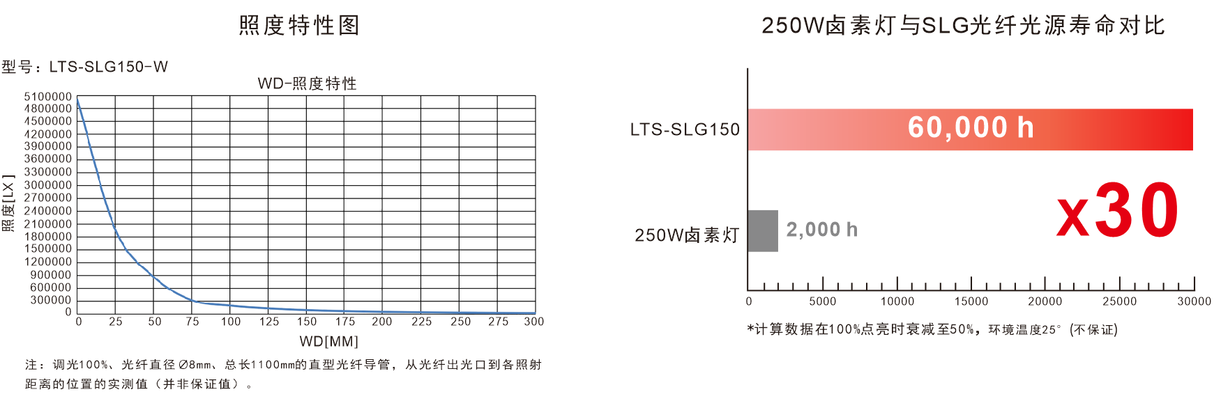 傳統的鹵素燈和氙燈光纖光源壽命短、能耗高,發熱量大,維護成本高,已經不適合現在節能環保的使用要求,樂視開發第二代替代鹵素燈的LED光纖光源,可完全替代50-300W的傳統鹵素燈光纖光源,光纖光源壽命長(可達6萬小時),亮度可達500萬Lx,環保(符合RoHS標準),均勻性好(無光暈,無亮斑及暗區),是一款品質非常精良的光纖光源,使用壽命為進口鹵素燈光源的20倍以上,功耗僅為鹵素燈1/10,同時大幅降低了產品的維護成本。