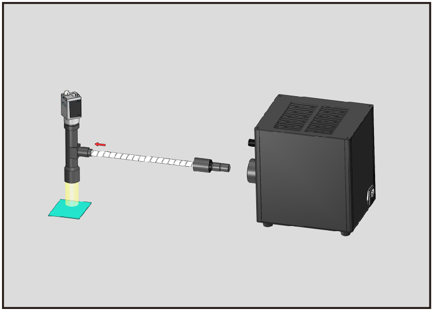 點光同軸成像系統對于光源亮度和均勻性都有較高要求,在飛拍、高速檢測環境下,有時常規點光源無法滿足檢測要求,針對常規點光源存在的亮度不足、均勻性不夠導致成像效果不理想的情況。此時光纖導光束能夠作為補充產品,高效完成檢測任務。