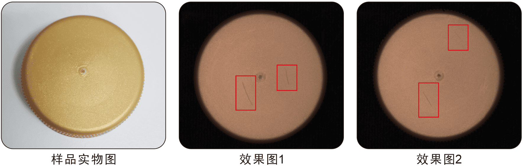 檢測塑料蓋的表面劃痕、碰傷、臟污等缺陷,一般采用高角度垂直光路類型的光源,如高角度環形光或同軸光源,但是產品表面帶有微弱的曲面、且為磨砂面,采用此類光源會不均勻,會導致灰度差別比較大,影響檢測結果。