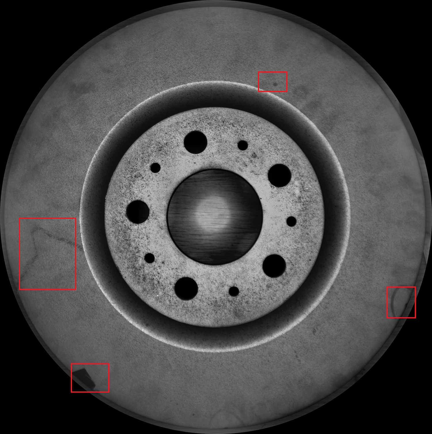 目前,剎車盤表面缺陷檢測常用的技術包括渦流檢測、磁粉探傷、紅外檢測、X 射線檢測以及機器視覺檢測等。與其他接觸式測量工具或人工目視檢測相比,機器視覺檢測憑借著無損、非接觸式特點;具有檢測數據準確度高,效率高,能顯著降低人工成本等優勢,正逐漸廣泛應用于這一行業。該技術能快速采集剎車盤表面的高分辨率圖像,并使用強大的深度學習圖像處理算法,實現對多種外觀缺陷識別、區分和關鍵尺寸的精確測量。