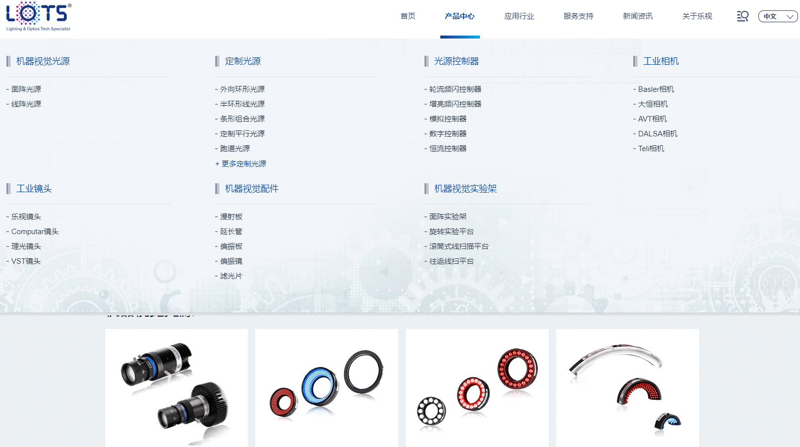 產(chǎn)品中心是樂(lè)視科技主要核心欄目,二級(jí)欄目包含機(jī)器視覺(jué)光源、定制光源、光源控制器、工業(yè)相機(jī)、工業(yè)鏡頭、機(jī)器視覺(jué)配件、機(jī)器視覺(jué)實(shí)驗(yàn)架等幾個(gè)大類,產(chǎn)品內(nèi)頁(yè)附有最新規(guī)格參數(shù)、圖紙下載,供您方便查閱。