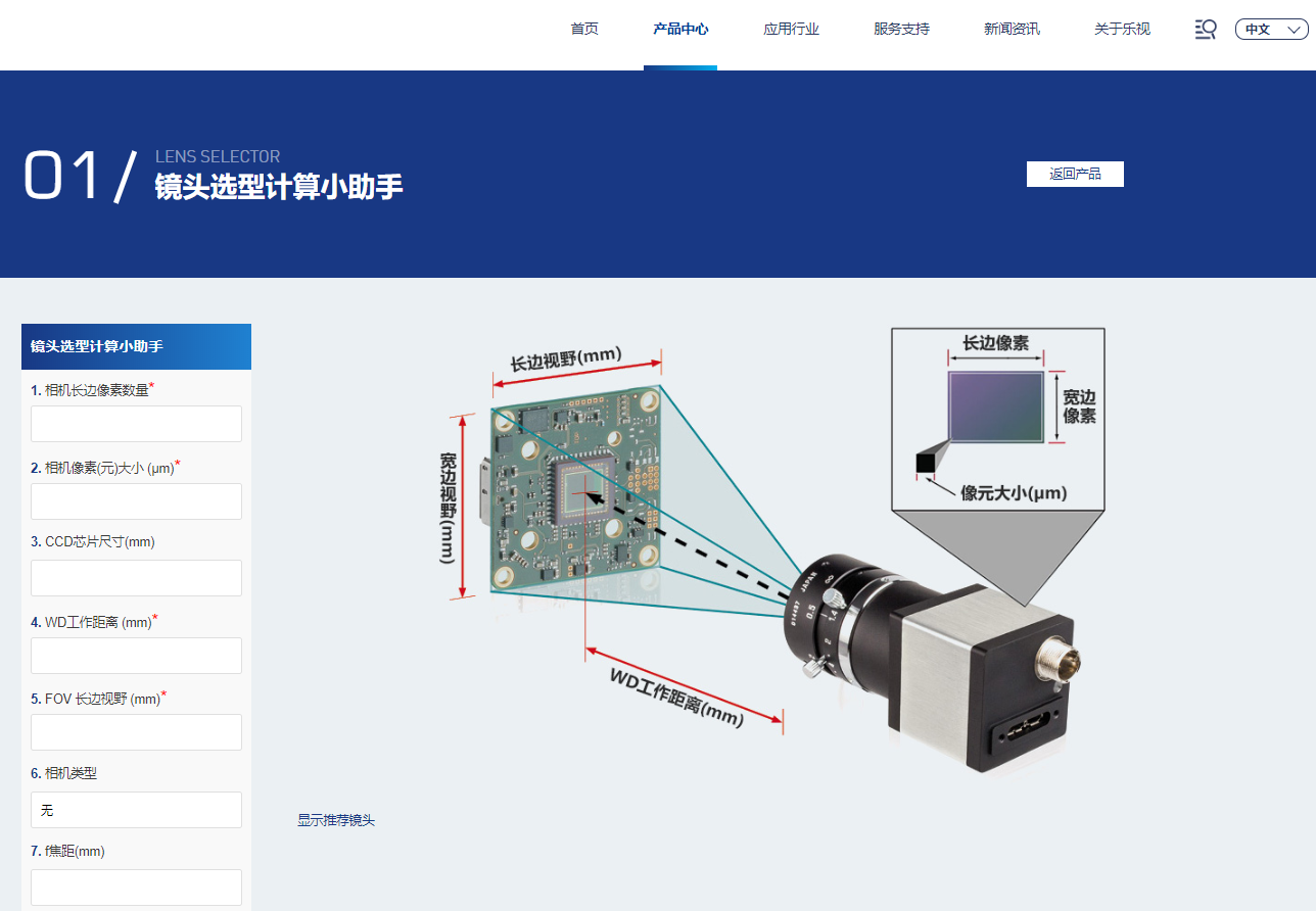 網(wǎng)站新增了鏡頭選型助手計(jì)算功能,方便所有工程師選型鏡頭相機(jī)。