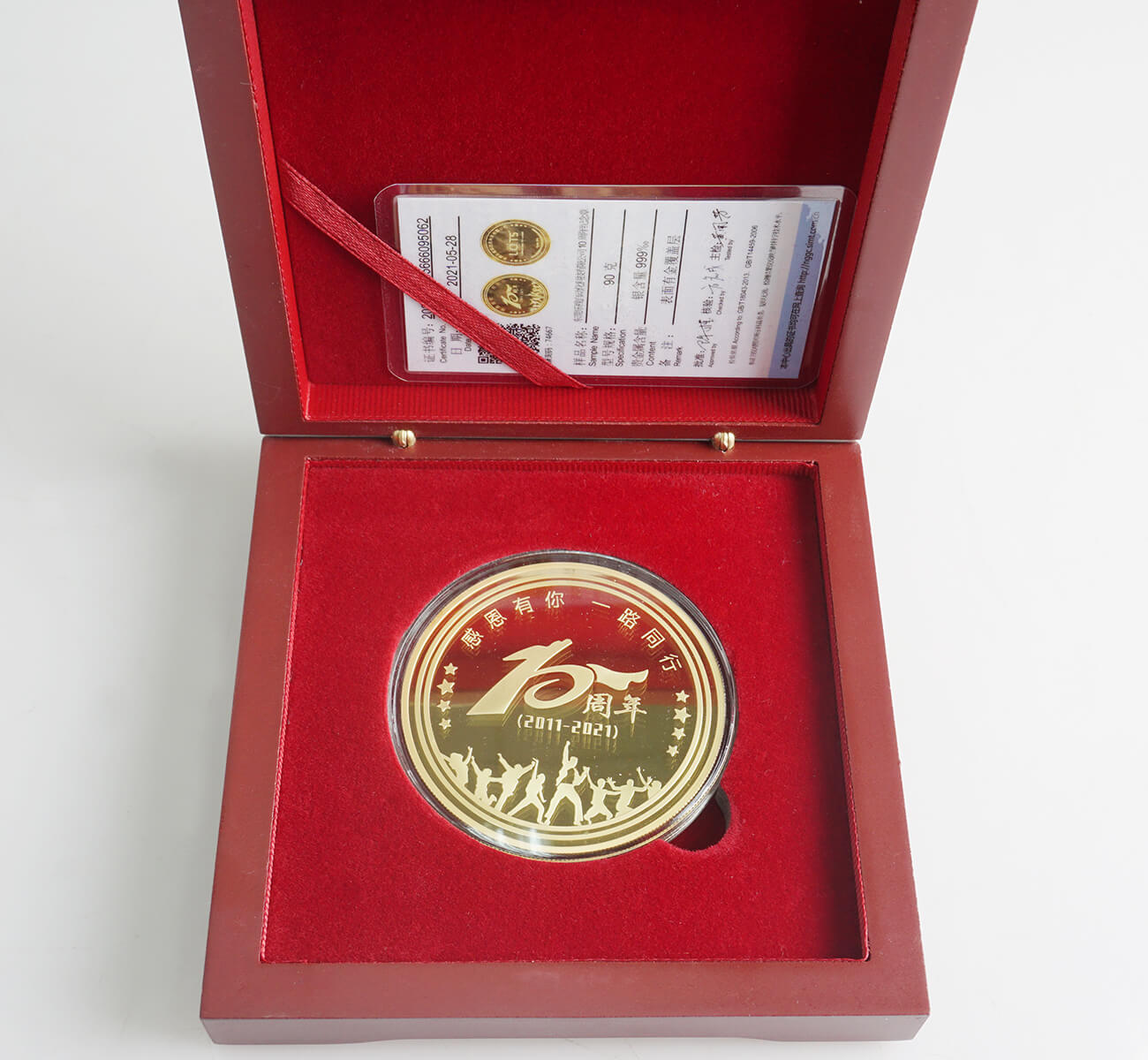 服務滿2-3周年的員工,可獲得30克定制純銀鍍金紀念幣1枚;