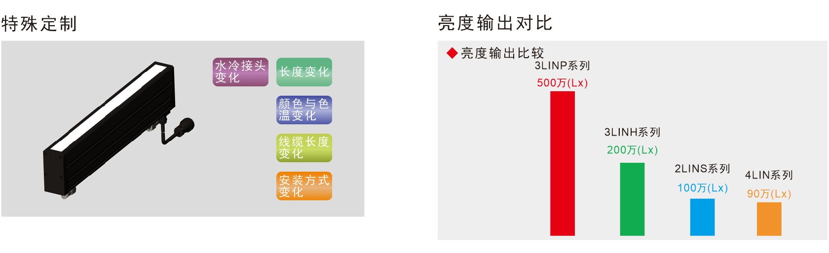 * 最長可定制3米。紫外和紅外光源可根據客戶要求定制。 * 發光峰值波長/相關色溫:紅色:620-630nm,綠色:525-530nm,藍色:465-470nm,白色:6600K(色溫) |