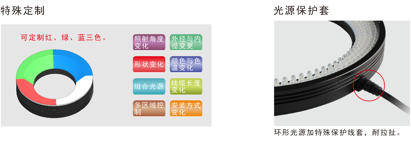 * 紫外和紅外光源可根據(jù)客戶要求定制。 * 發(fā)光峰值波長(zhǎng)/相關(guān)色溫:紅色:620-630nm,綠色:525-530nm,藍(lán)色:465-470nm,白色:6600K(色溫) |