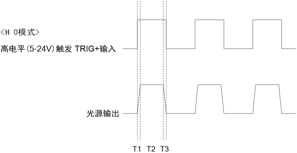 當(dāng)外部連接觸發(fā)信號時(shí),觸發(fā)“+”輸入高電平5-24V “-”接地時(shí),光源亮。