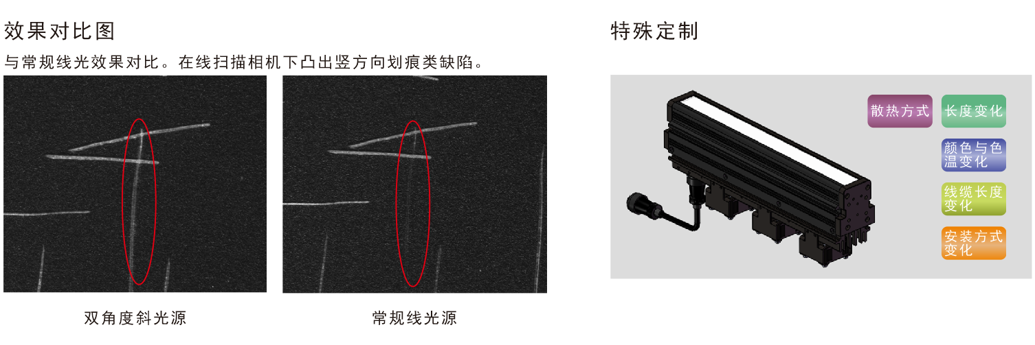 1.采用特殊光學設計結構,實現兩側斜光照射
