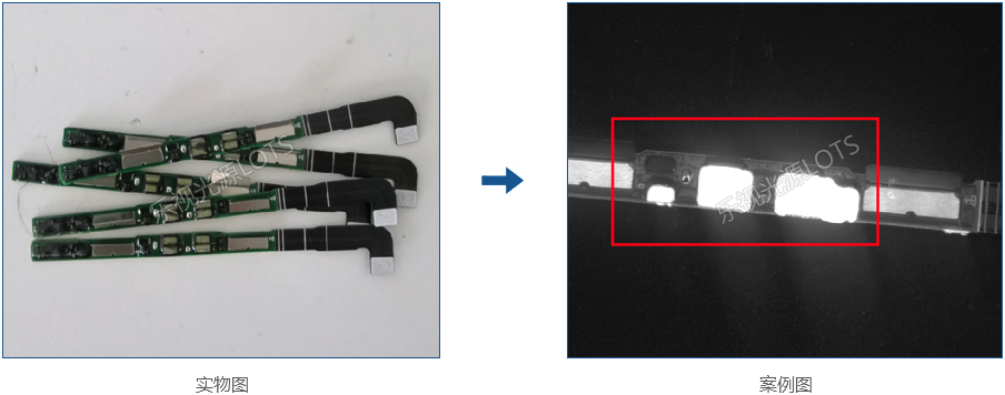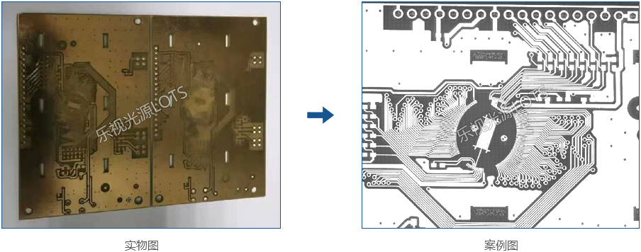 產品為反光材質,線路部分無反光,光源打白產品背景與黑色線路對比明顯。