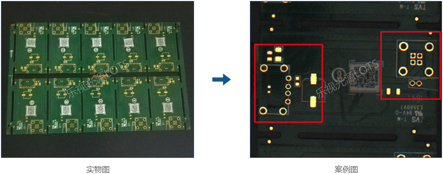 采用低角度環形光,光源反射使背景為白,點膠區域為黑形成鮮明對比。