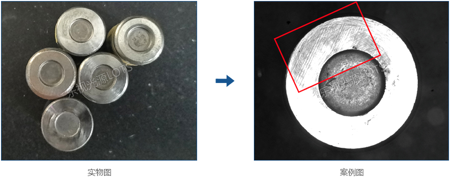 使用同軸光可打亮端面光滑處為白,未磨平處反光程度低灰度較低為黑,達(dá)到檢測(cè)目的。