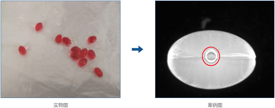 因反光影響膠點不適合正面打光,所以選擇背光源,底部打光,把氣泡打亮,特征明顯。